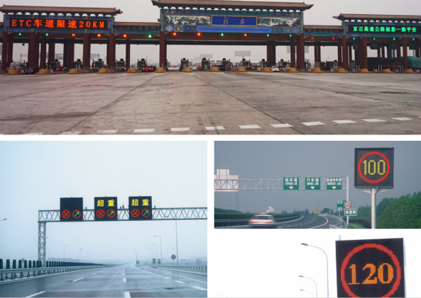 LED交通顯示屏在交通領域的應用不外乎有三種:信息發布、交通指示和道路監控。其中信息發布指LED可變情報板、高速入口信息發布屏;交通指示指交通誘導屏和LED限速和車道指示標志;道路監控主要是指交通指揮調度中心和監控中心的小間距屏。